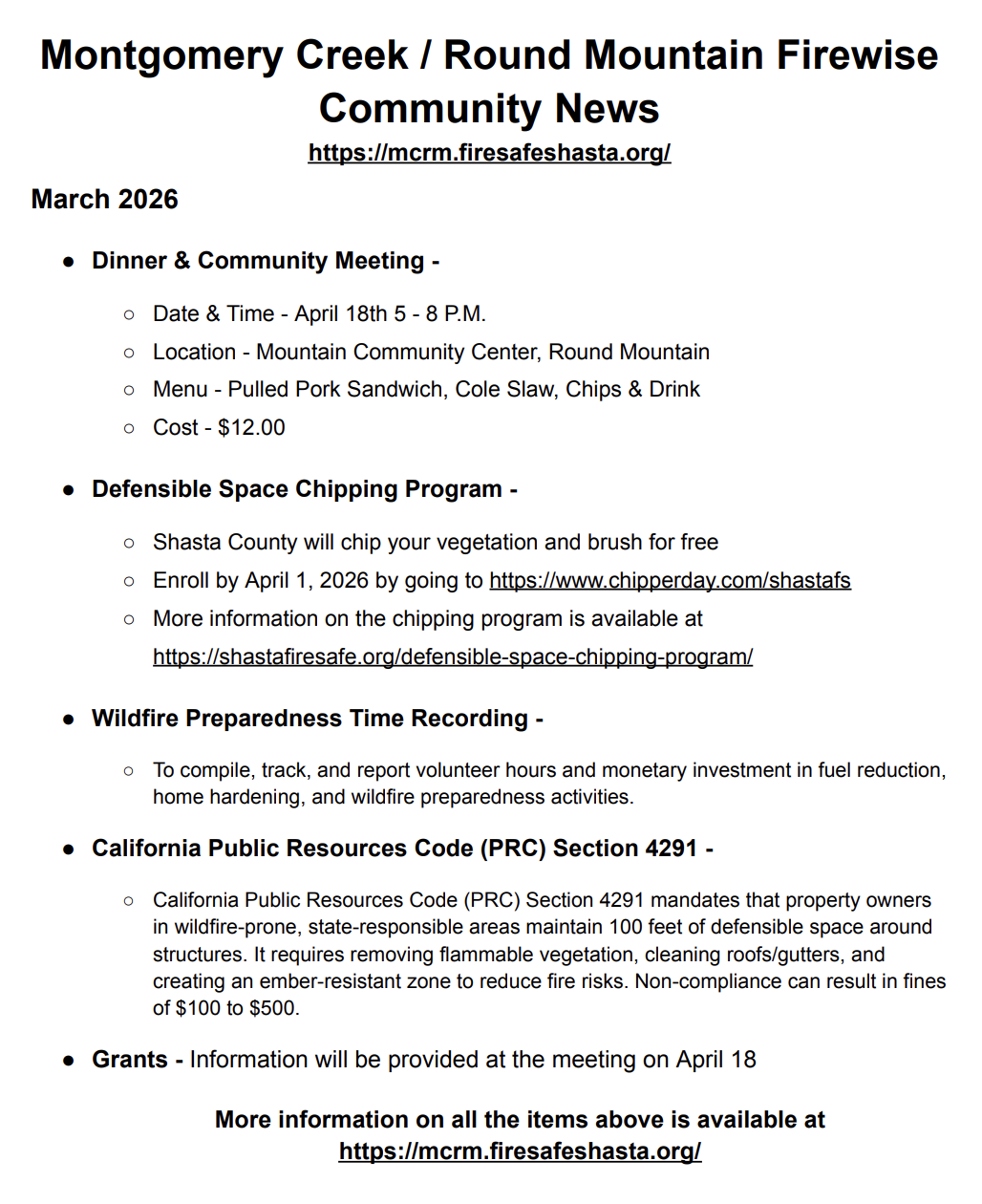 Montgomery Creek Round Mountain Firewise Community Dinner