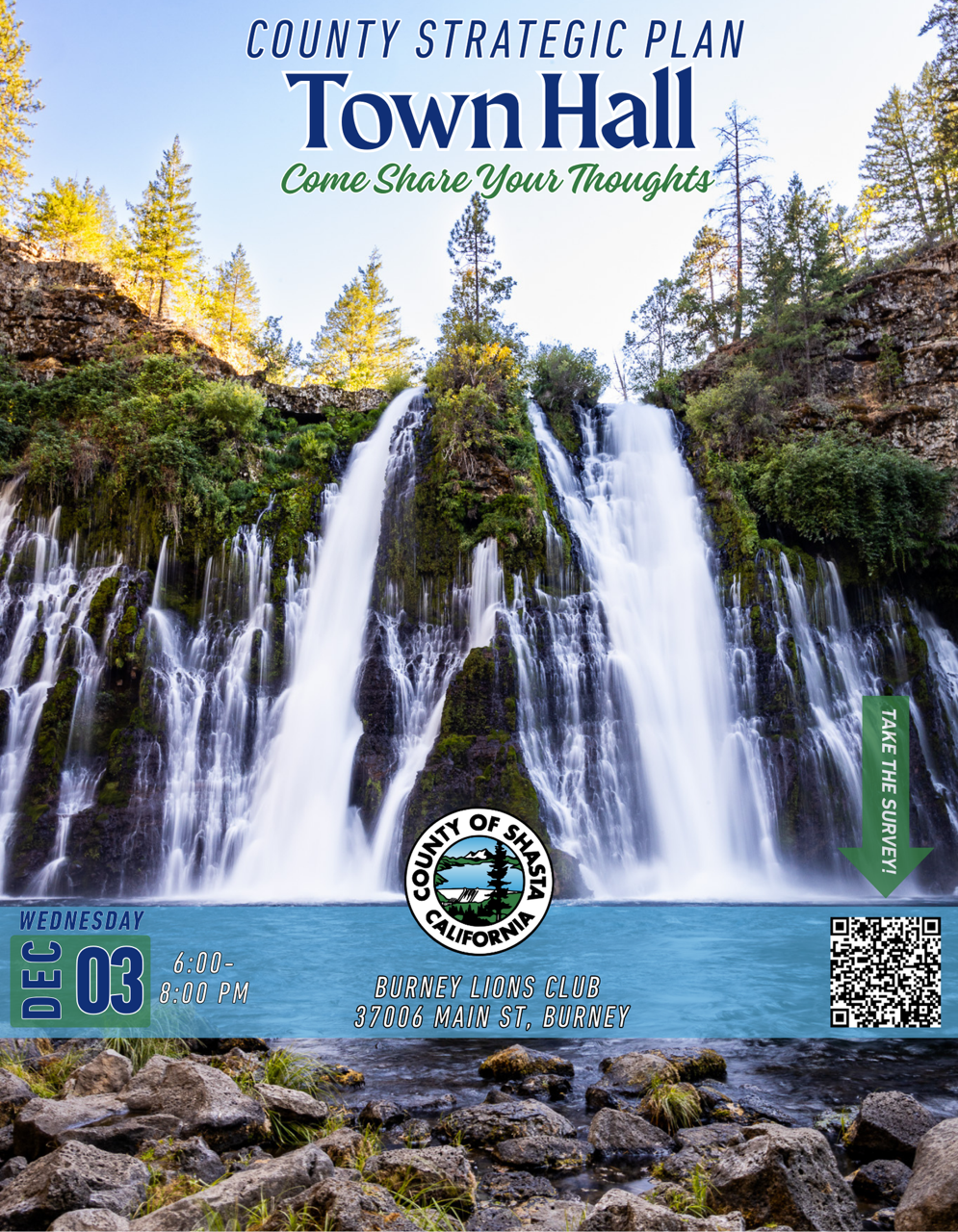 December 3 @ 6:00 pm - 8:00 pm County Strategic Plan Town Hall ~ Burney Burney Lions Club 37006 Main Street, Burney, CA, United States